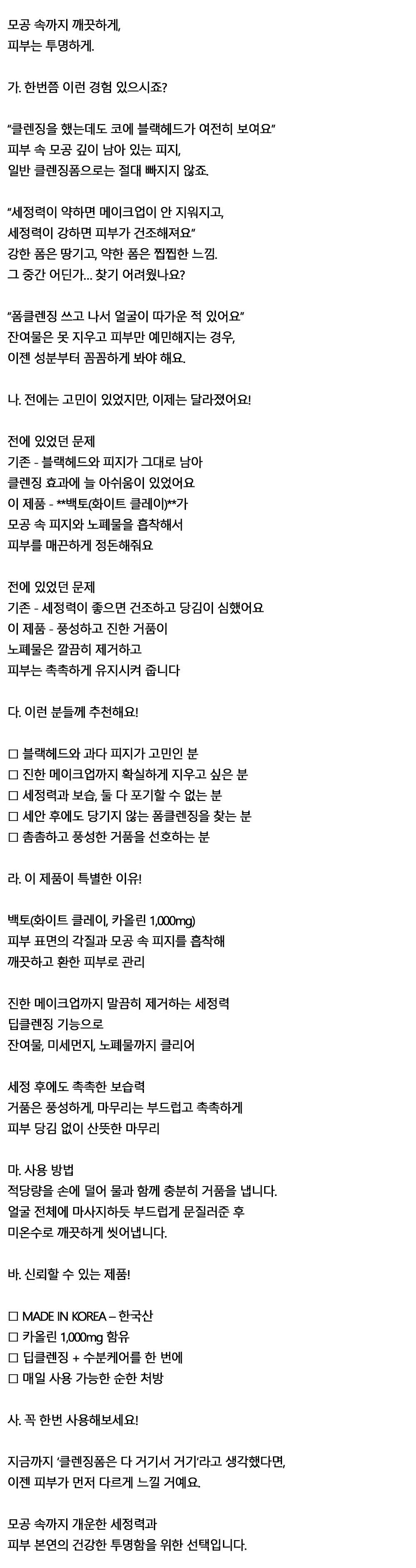 쌓인 과다 피지가 고민이신가요 백토 클렌징폼 150g