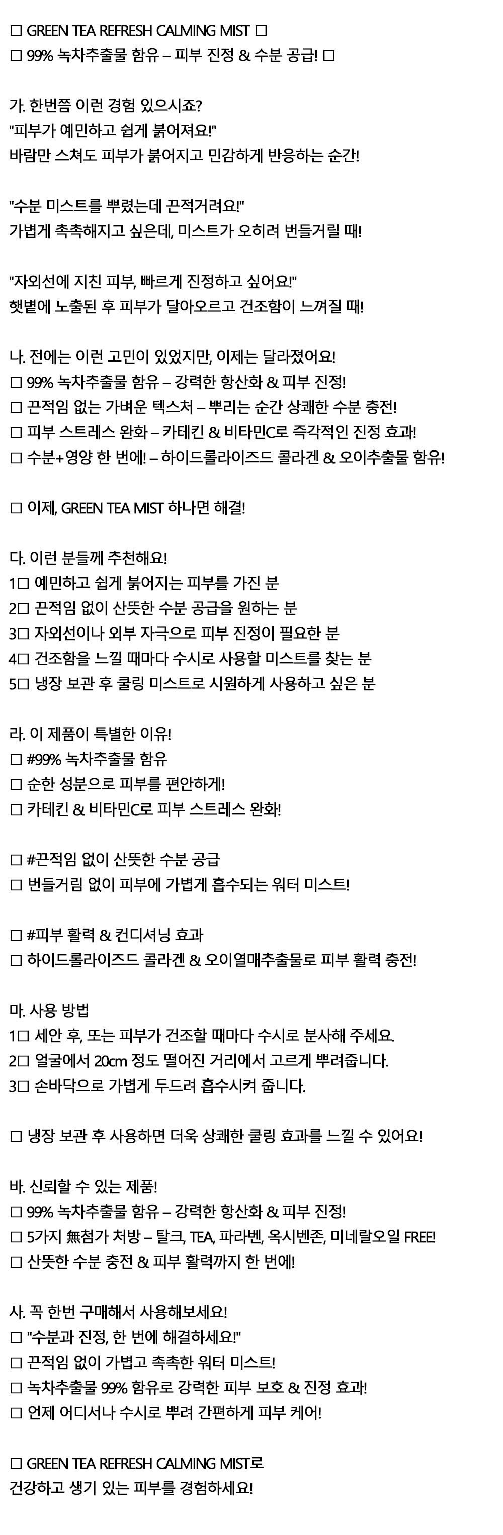 뿌리는 순간 상쾌한 수분 충전 그린티 미스트 100ml