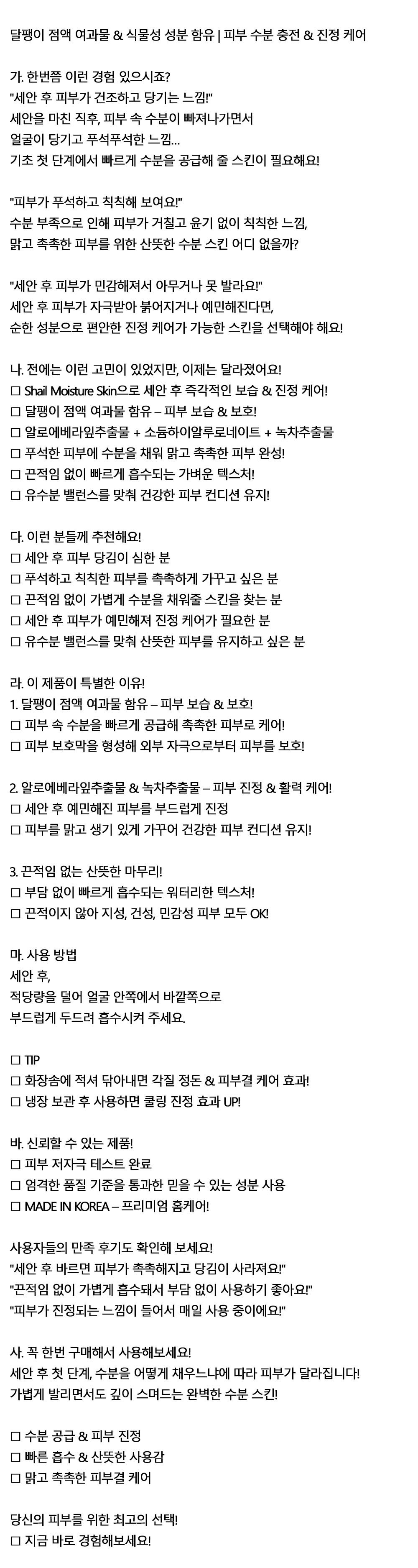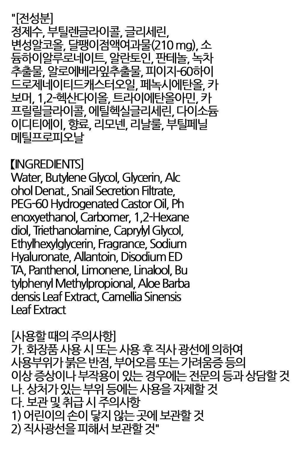 맑고 촉촉한 피부를 위한 산뜻한 스네일 스킨 210ml