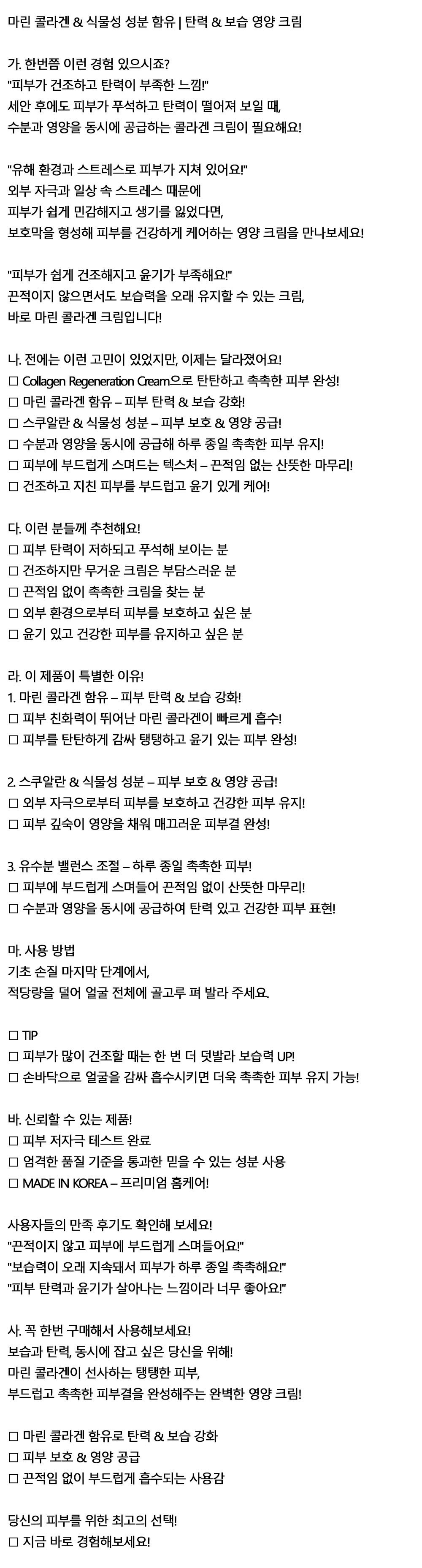 수분과 영양을 동시에 공급하는 마린콜라겐 크림 60ml