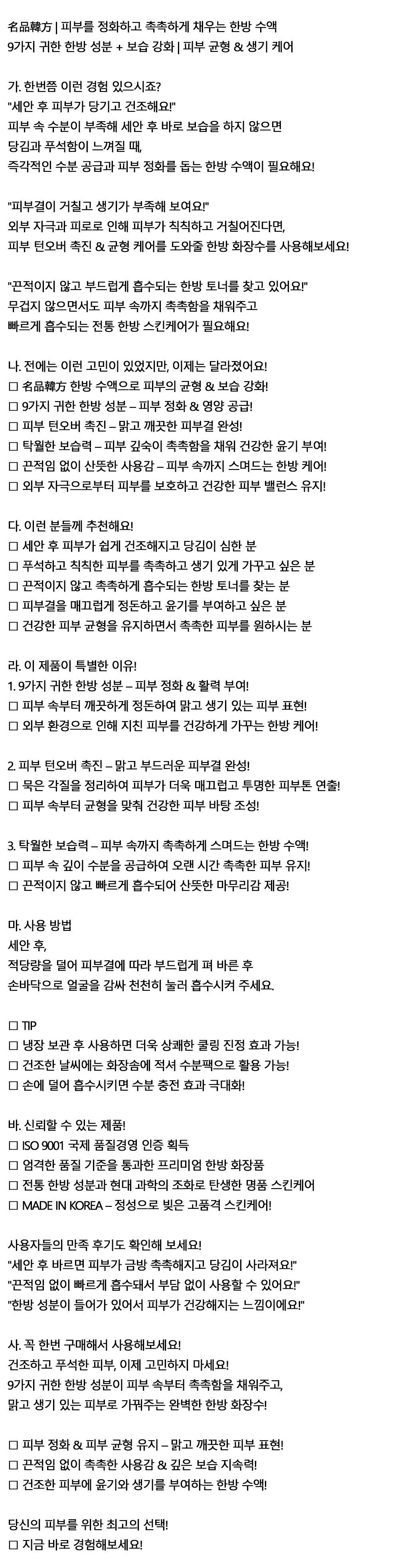 끈적이지 않고 부드럽게 흡수되는 한방 수액 150ml