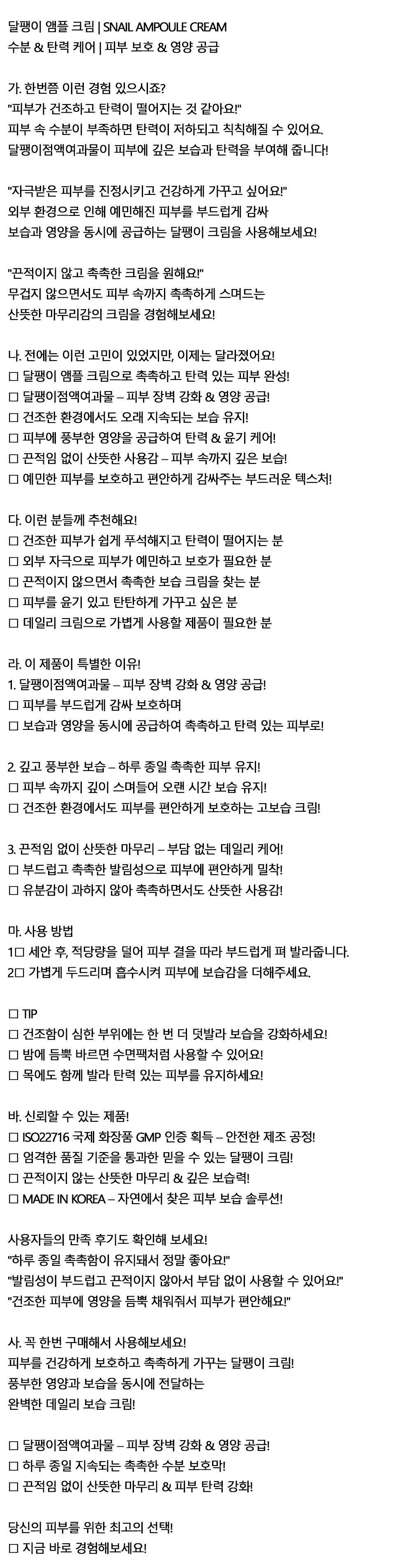 보습과 영양을 동시에 공급하는 달팽이 앰플크림 70ml