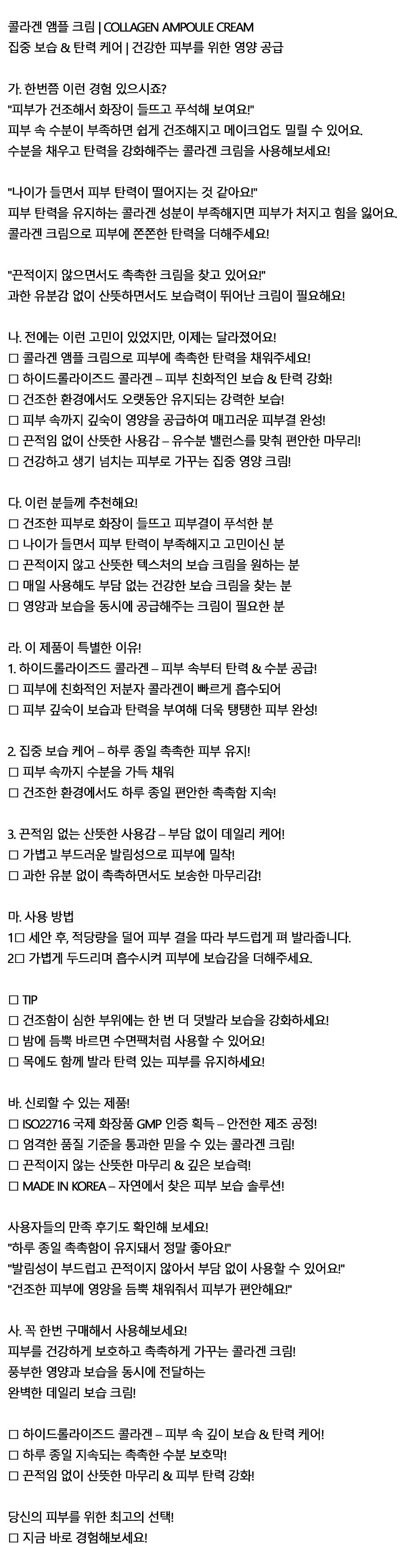 산뜻하면서도 보습력이 뛰어난 콜라겐 앰플 크림 70ml