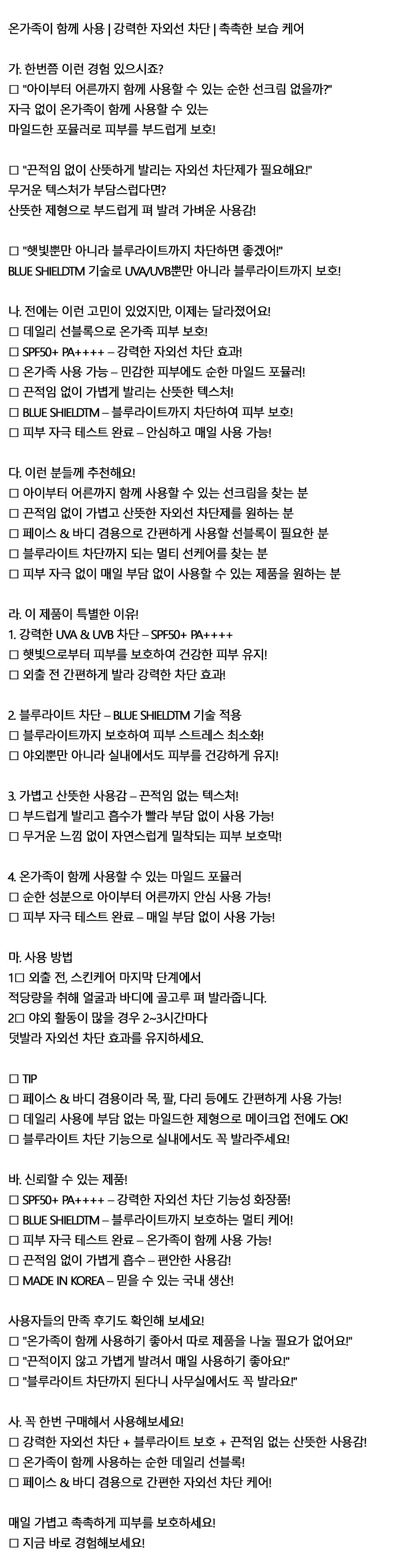 아이부터 어른까지 사용할 수 있는 순한 선블록 70ml