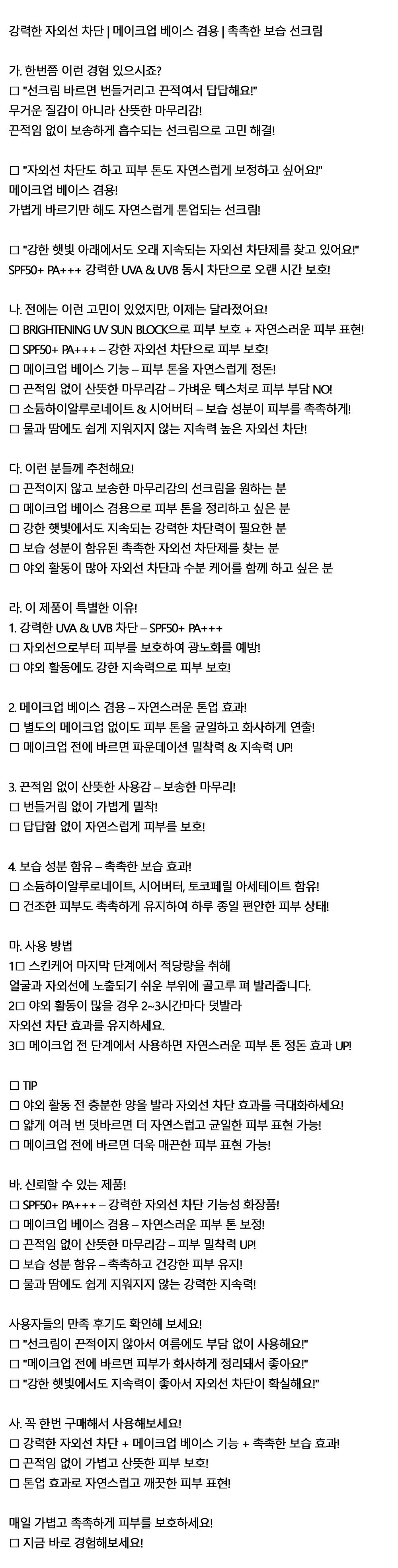 강한 햇빛 아래에서도 오래 지속되는 보송 썬블럭 70g
