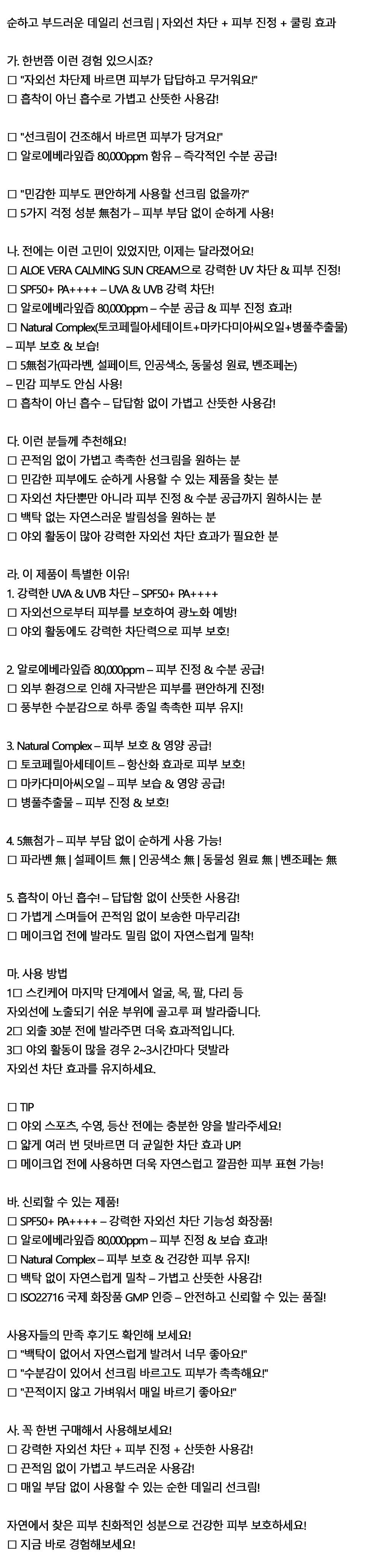 흡착이 아닌 흡수 가볍고 산뜻한 알로베 선크림 70ml