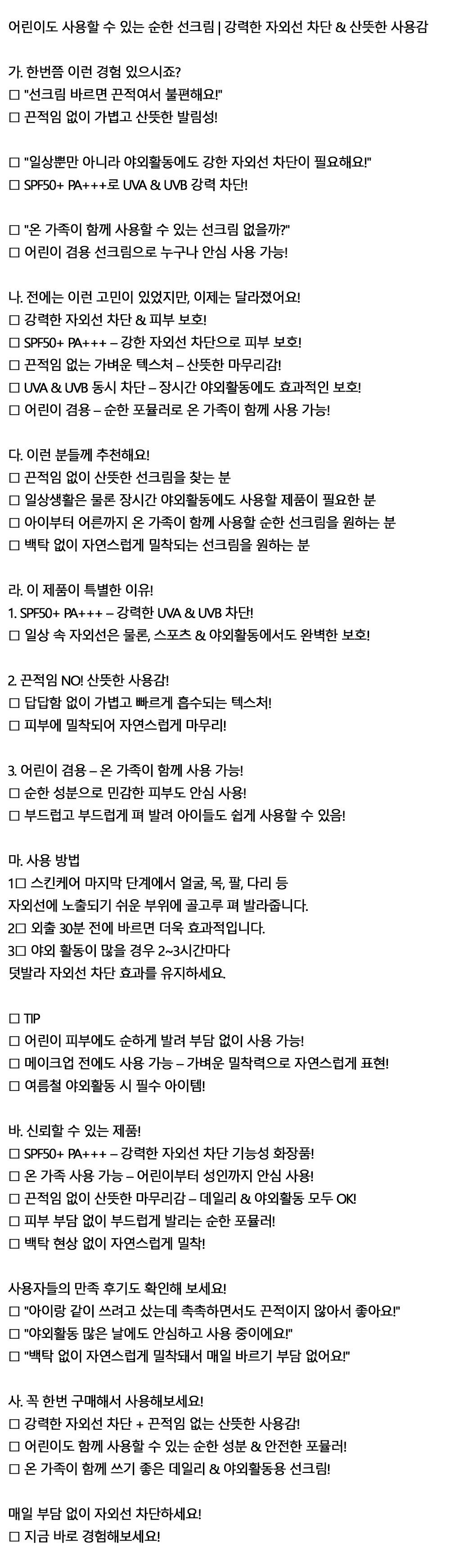 순한 포뮬러로 온 가족이 함께 사용가능 선크림 70ml