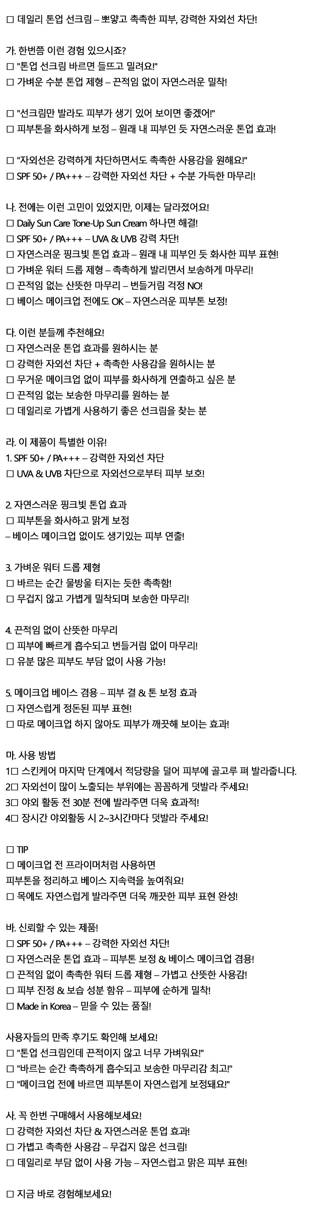 뽀얗고 촉촉한 피부 강력한 자외선 톤업 선크림 50ml