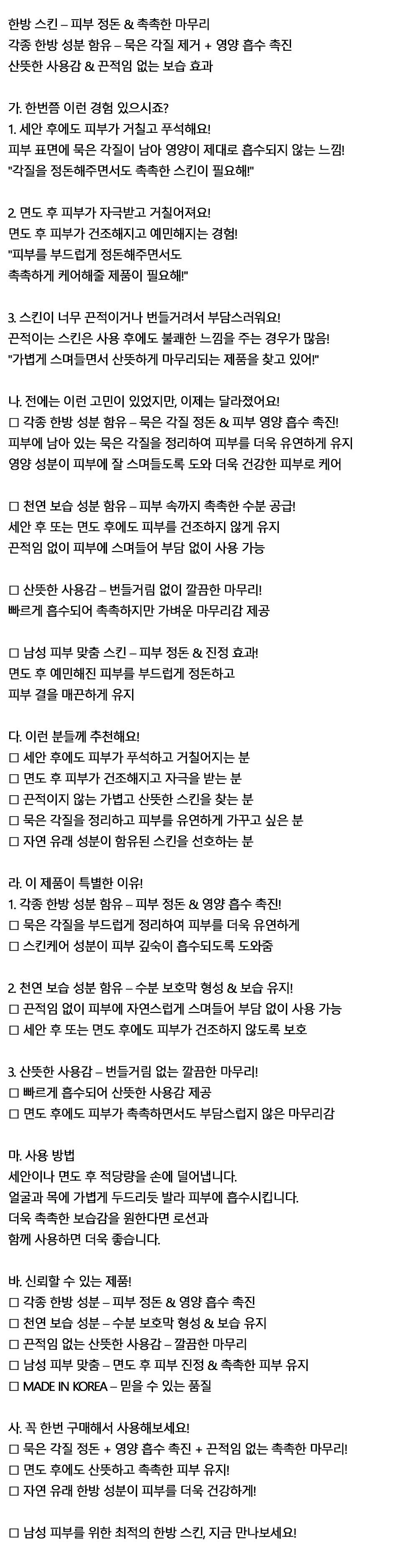 산뜻한 사용감 끈적임 없는 보습 한방 남자스킨 150ml
