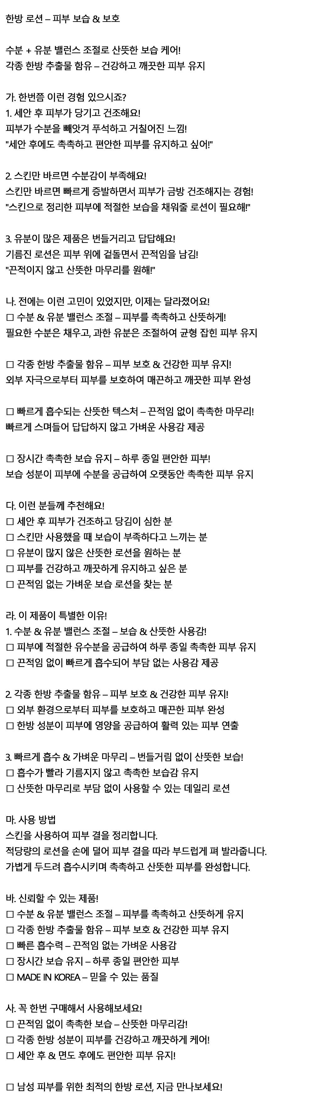 수분 유분 밸런스 조절로 산뜻한 한방 남자로션 150ml