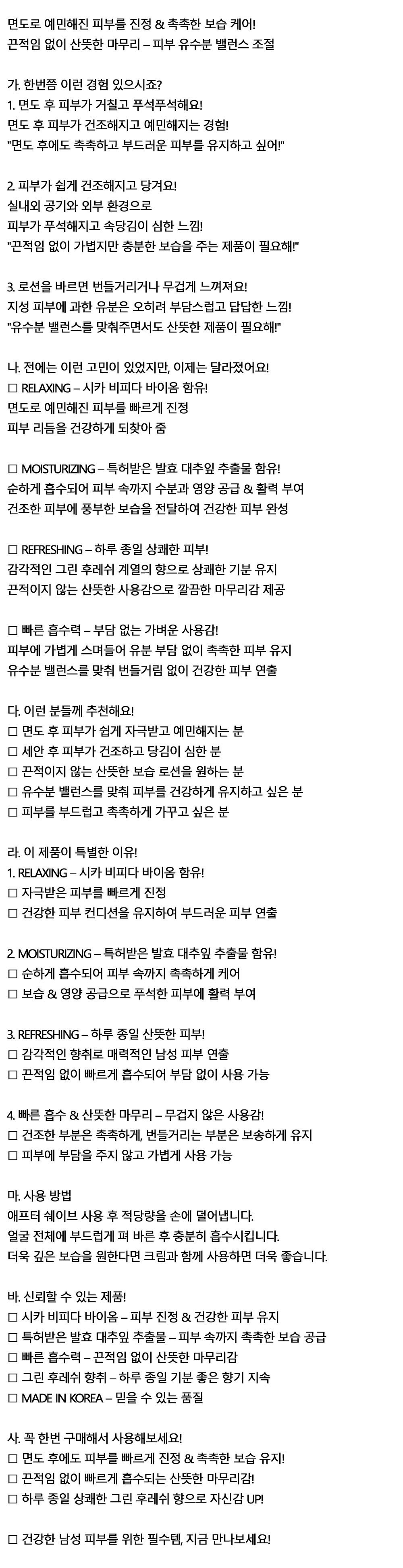 상쾌한 그린 후레쉬 향 촉촉한 보습 남자로션 150ml