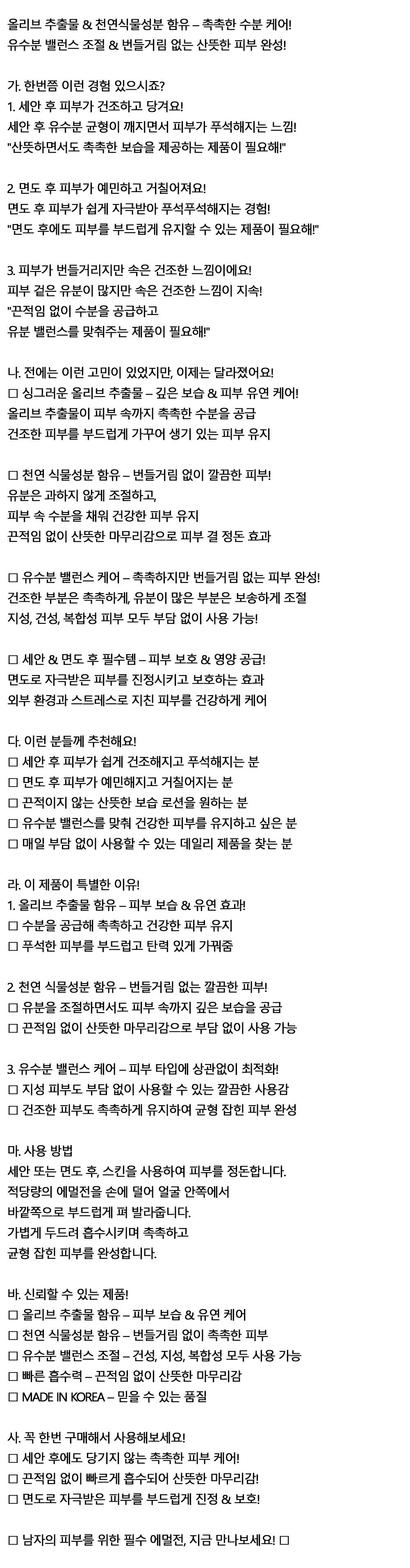 산뜻하면서 촉촉한 보습 올리브추출물 남자로션 150ml