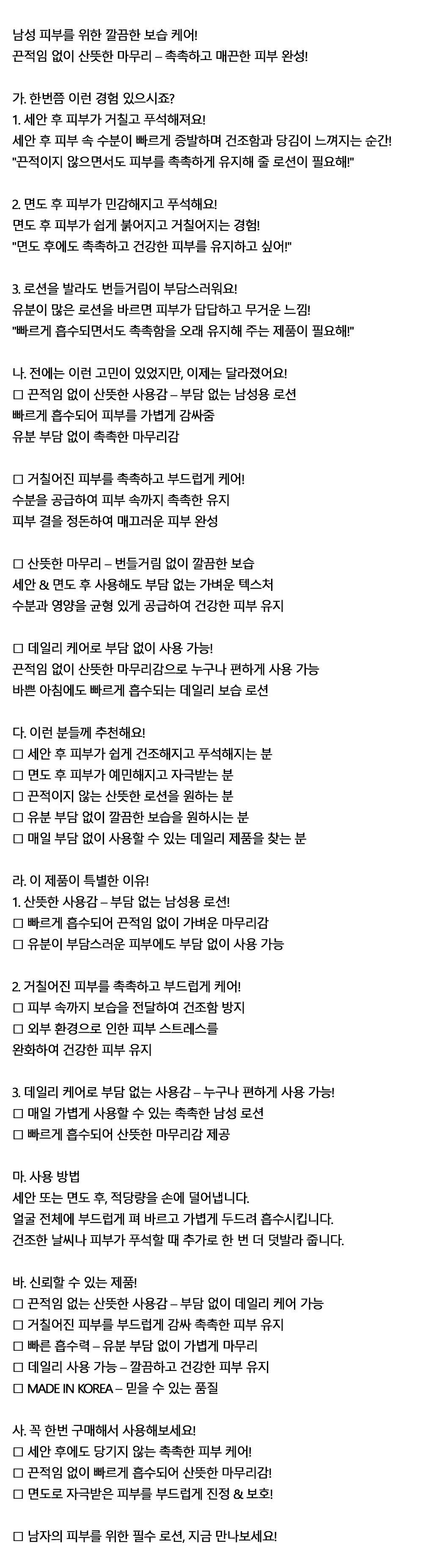 바쁜아침에도 빠르게 흡수되는 데일리 남자로션 300ml