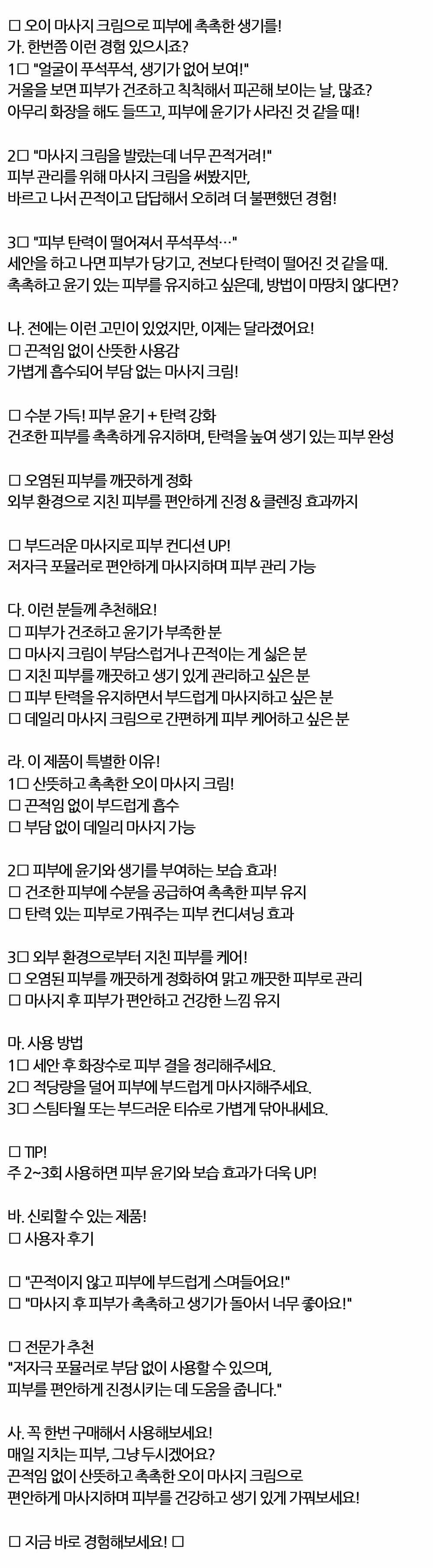 지치는 피부 그냥 두시겠어요 오이 마사지 크림 300ml