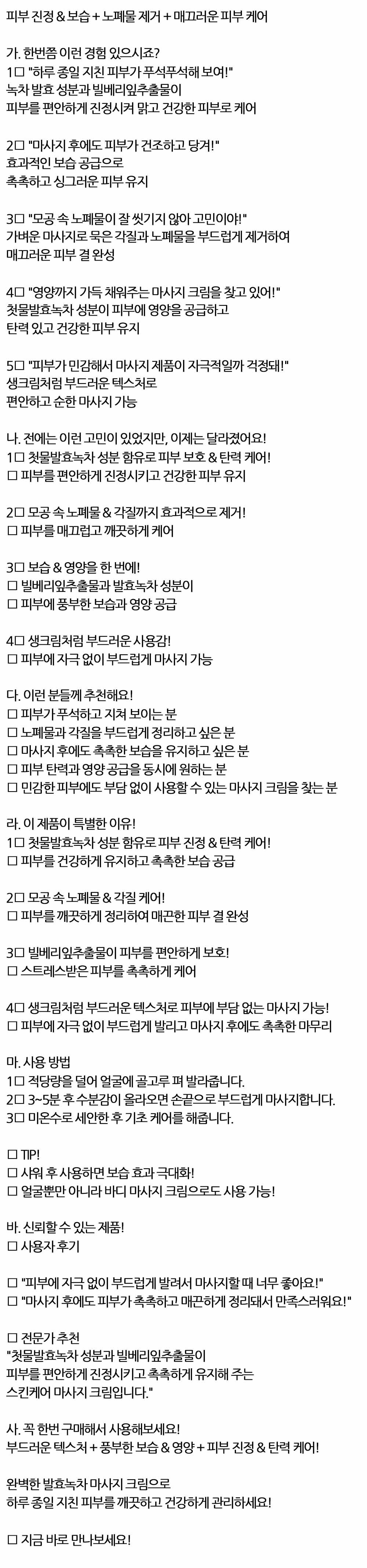 피부를 편안하게 맑고 건강한 녹차 마사지크림 300g
