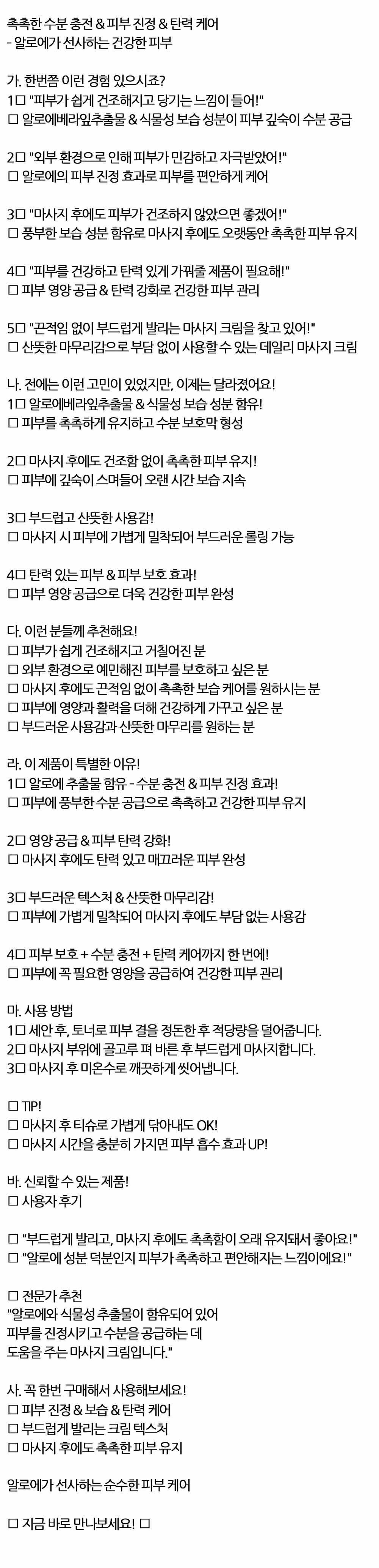 끈적임 없이 촉촉한 보습케어 알로에 마사지크림 300g