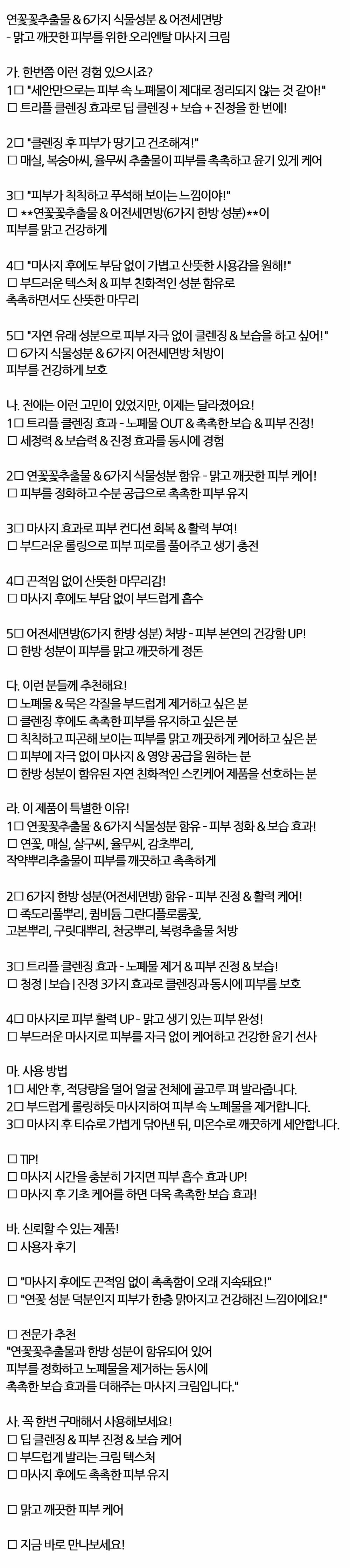 맑고 깨끗한 피부를 위한 오리엔탈 마사지 크림 300g