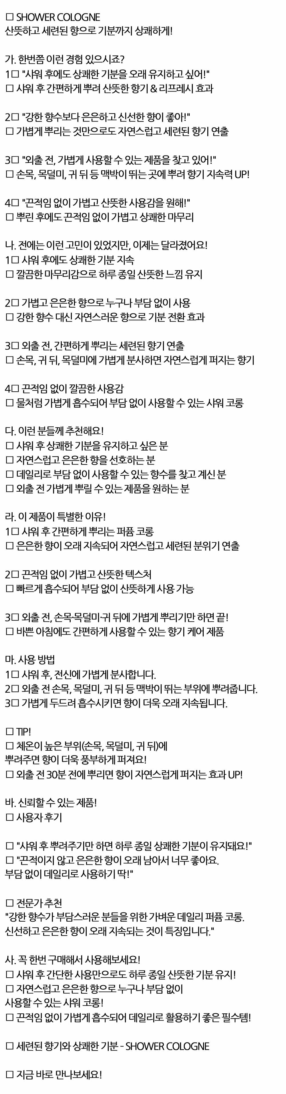 산뜻 세련된향으로 기분까지 상쾌하게 샤워코롱 150ml
