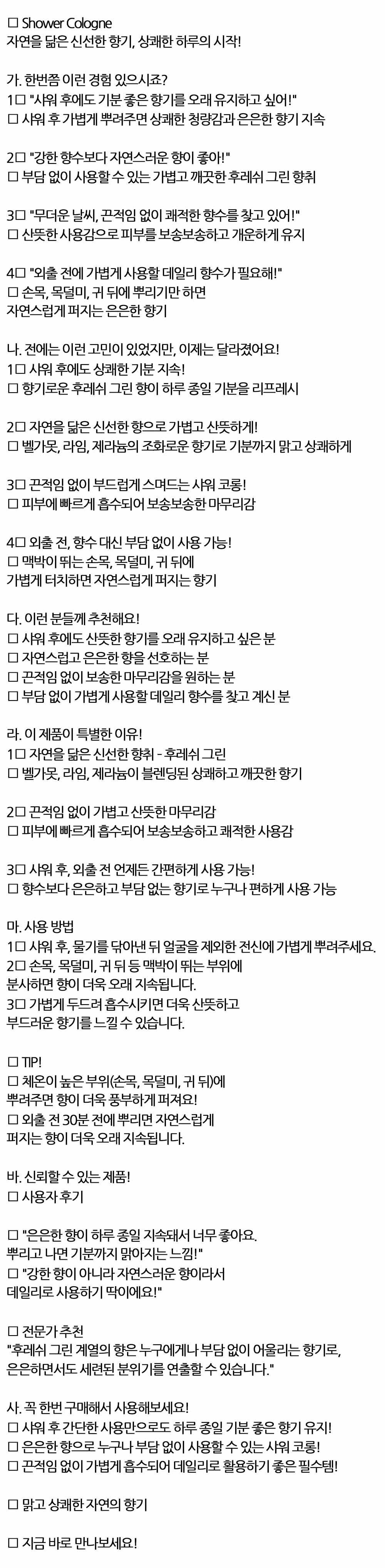 은은하면서도 세련된 분위기 그린계열 샤워코롱 134ml