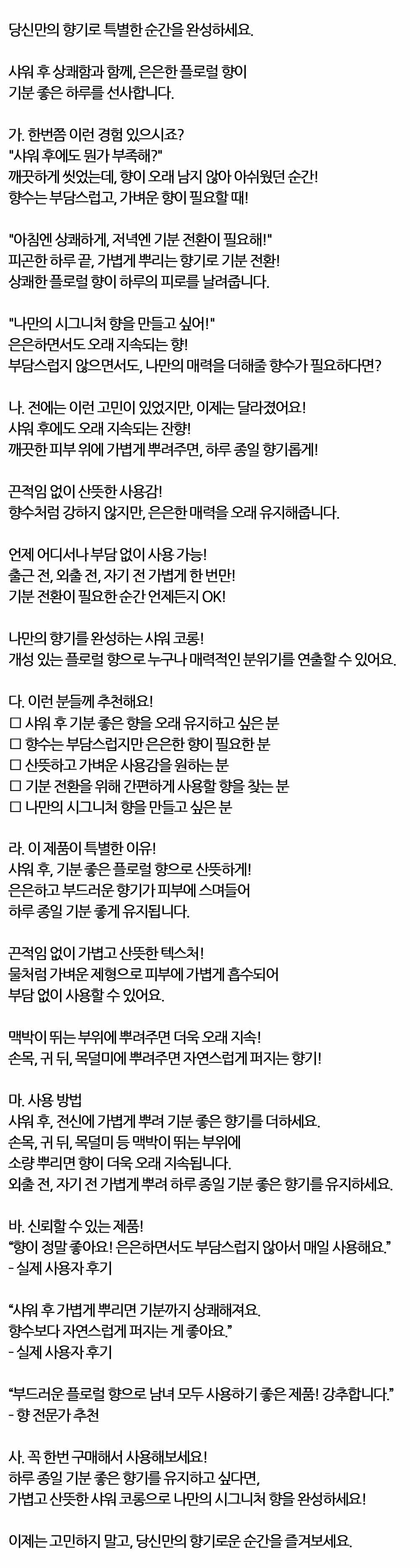 플로럴향이 하루의 피로를 날려줍니다 샤워코롱 150ml