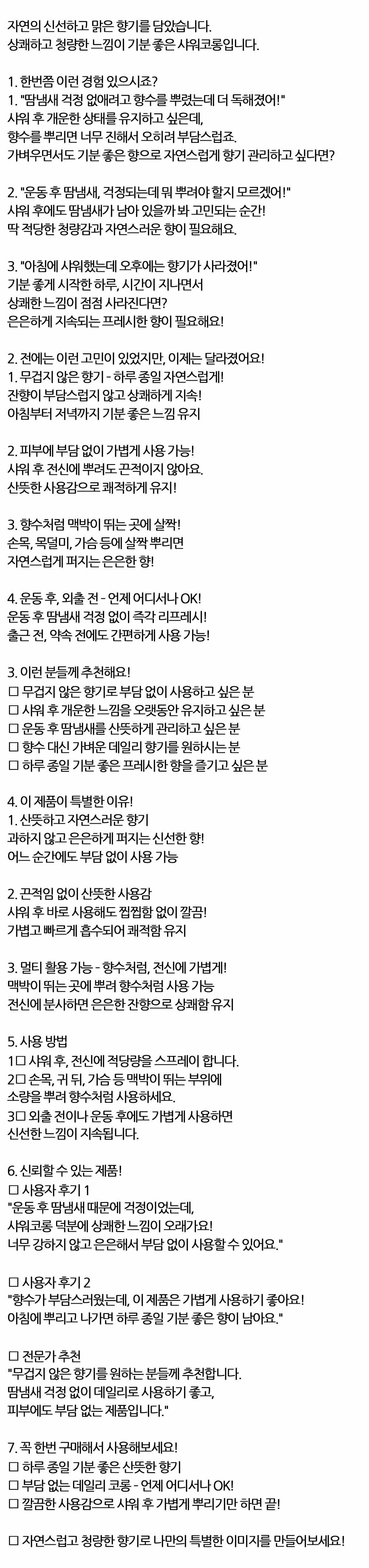 자연의 신선 맑은 향기를 담았습니다 샤워코롱 150ml