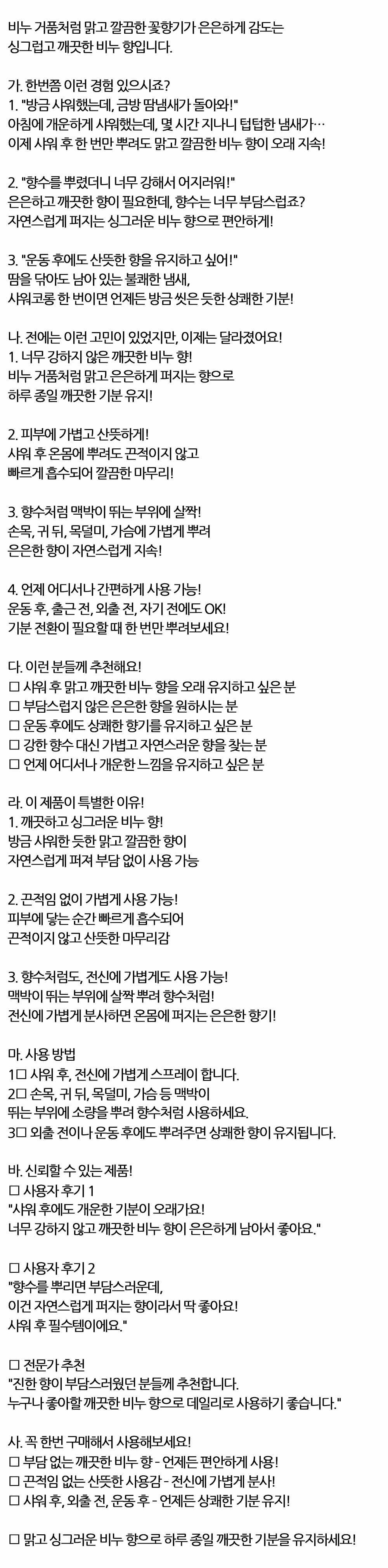 맑고 깔끔한 꽃향기 은은하게 감도는 샤워코롱 150ml
