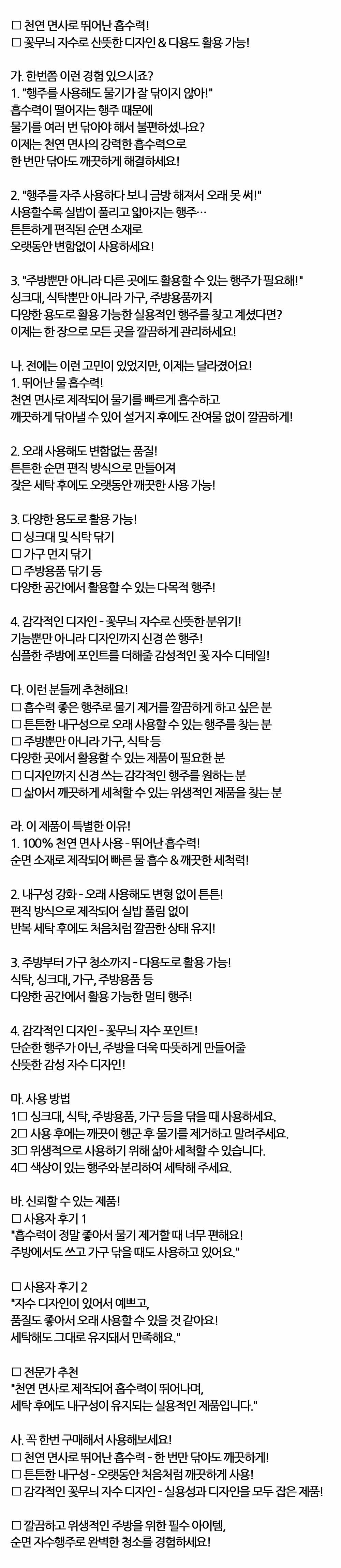 흡수력이 좋아서 물기 제거할 때 편해요 자수행주 2입