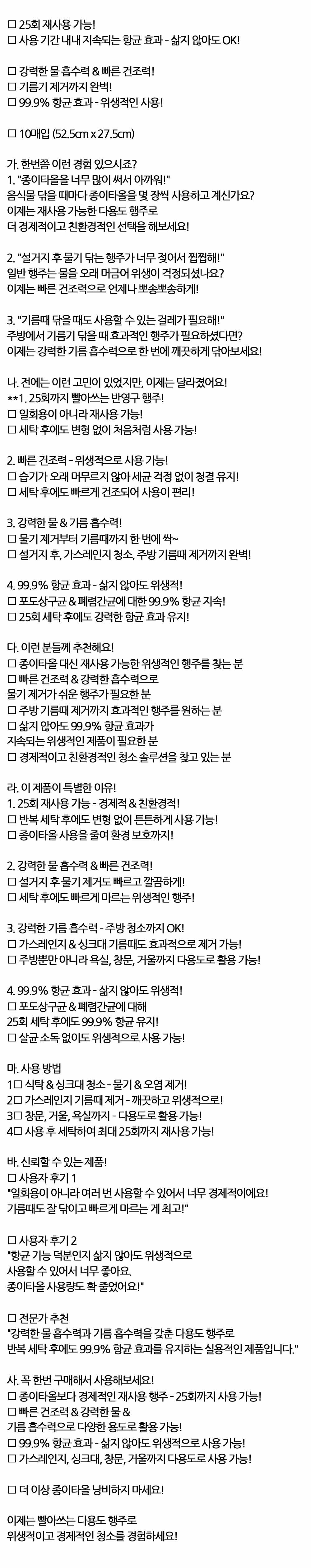 종이타올보다 경제적인 25회까지 빨아쓰는 행주 10입