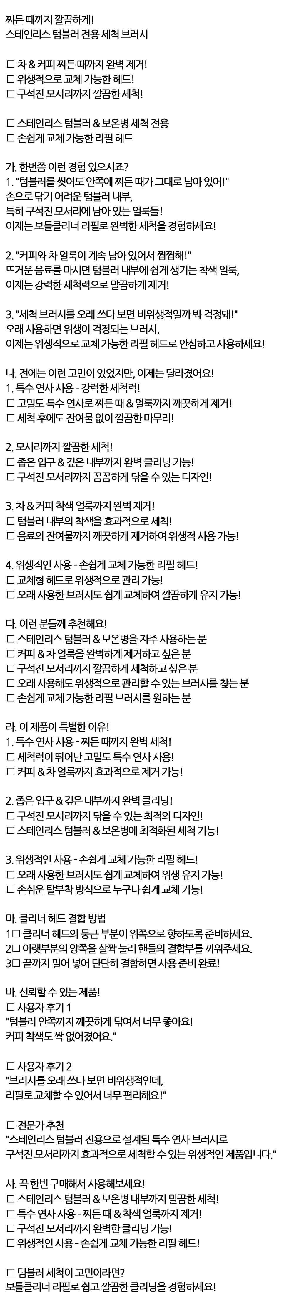 손으로 닦기 어려운 스테인리스 텀블러용 클리너 리필