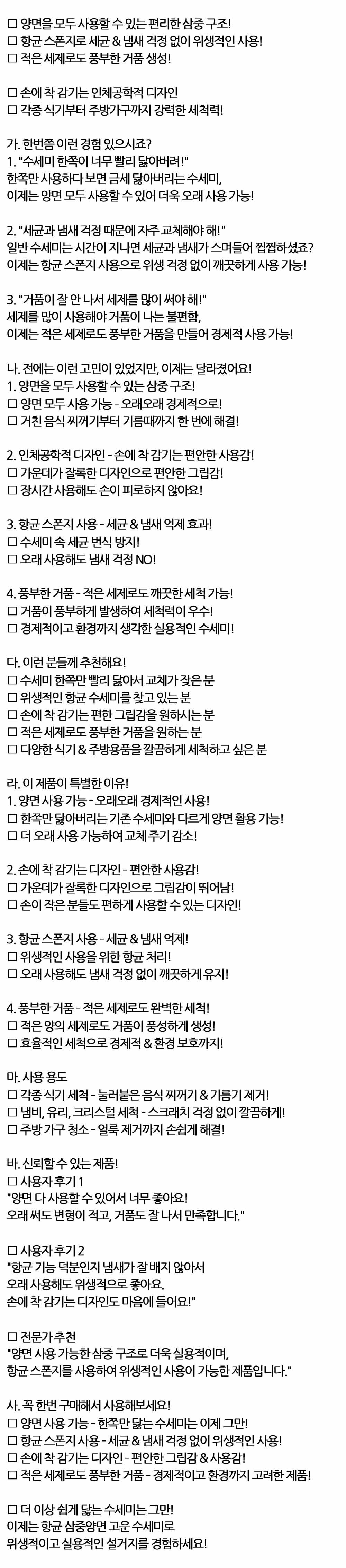 양면 모두 사용할수 있는 편리한 삼중구조 수세미 1입