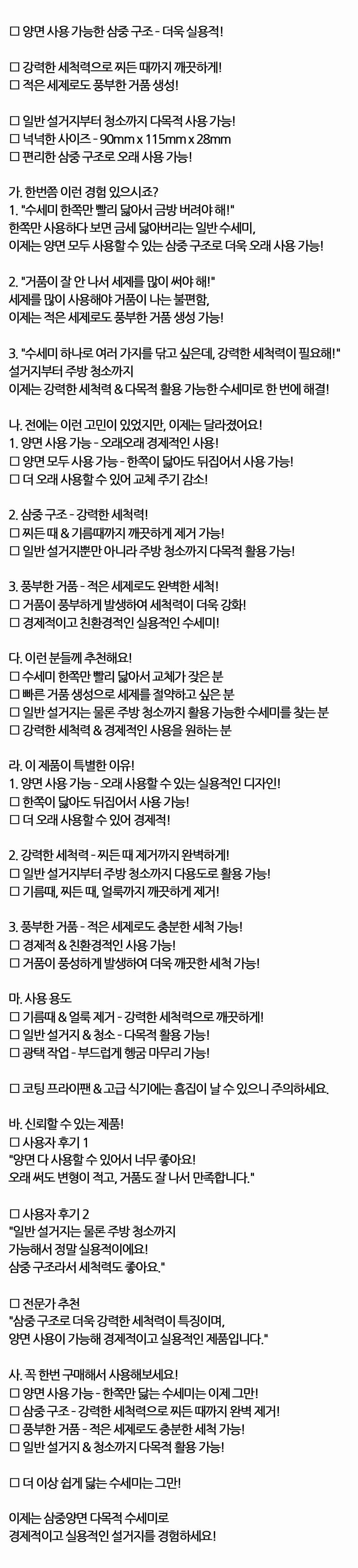 한쪽이 닳아도 뒤집어서 사용 가능 삼중 수세미 1입