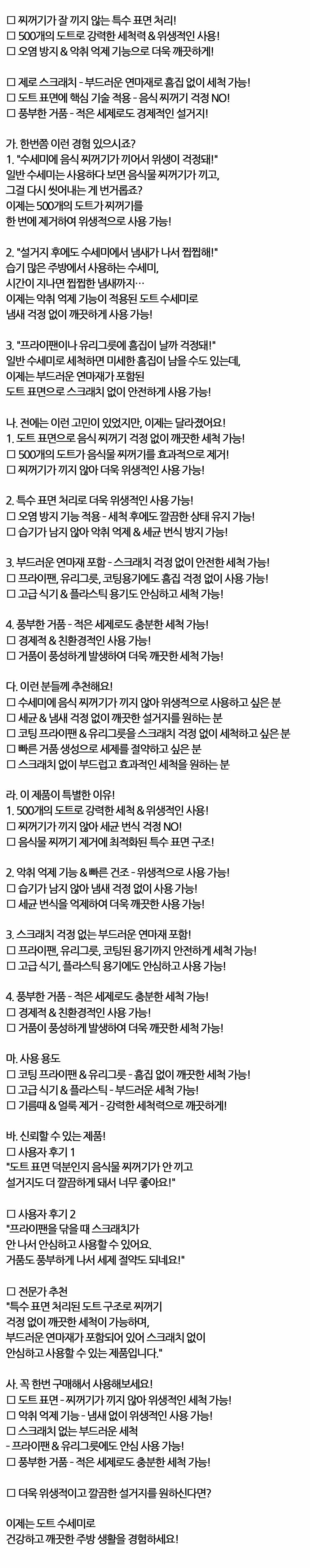 500개의 도트 찌꺼기를 한 번에 제거 위생 수세미 1입