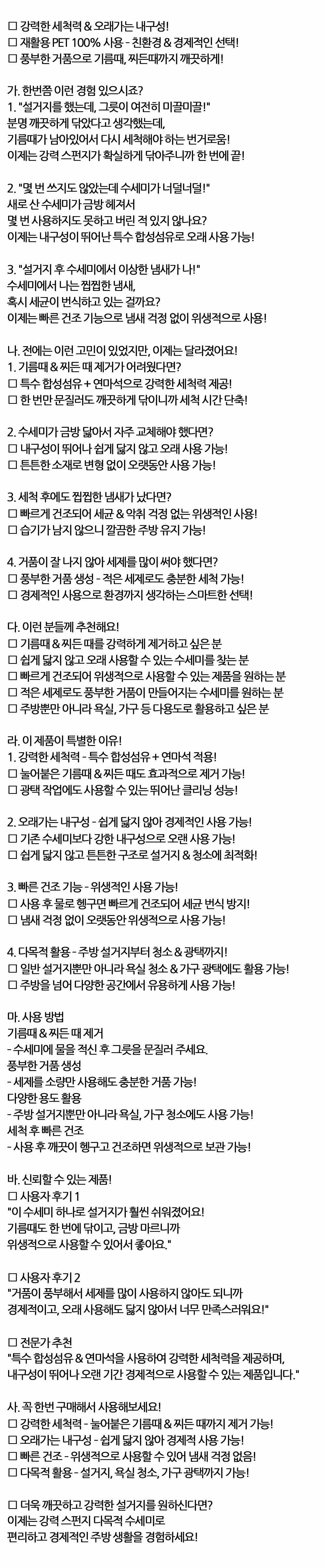 쉽게 닳지 않고 튼튼한 구조 설거지 소형 수세미 1입