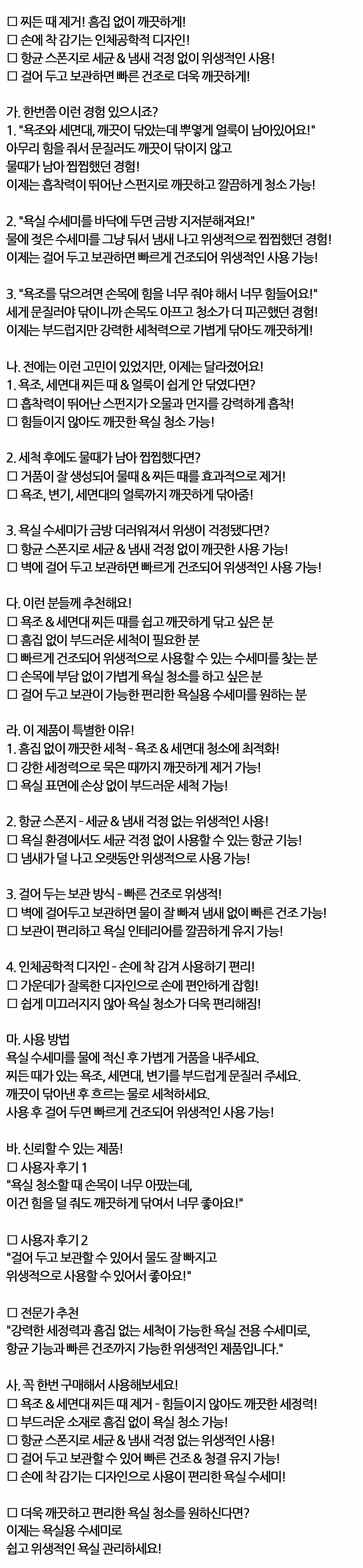 욕실청소할 때 손목이 너무 아팠는데 욕실 수세미 1입
