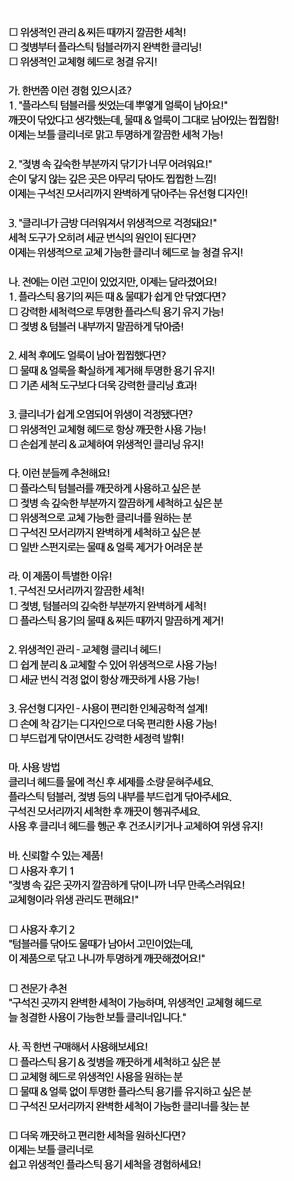 깊숙한 곳까지 닦기 너무 어려워요 플라스틱용 클리너