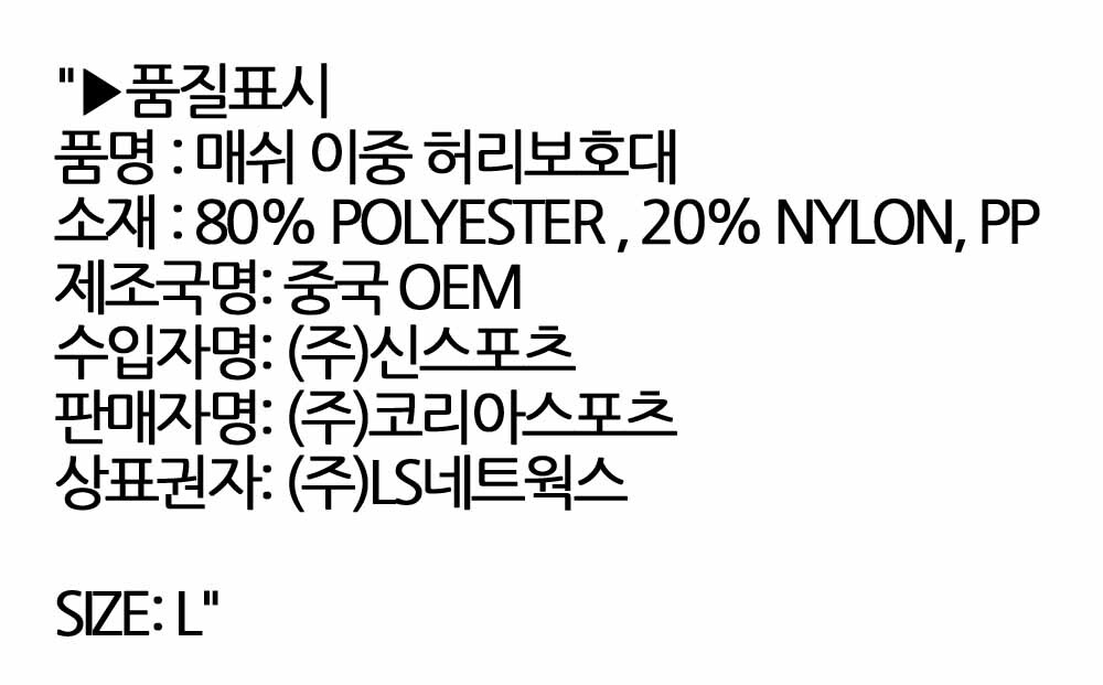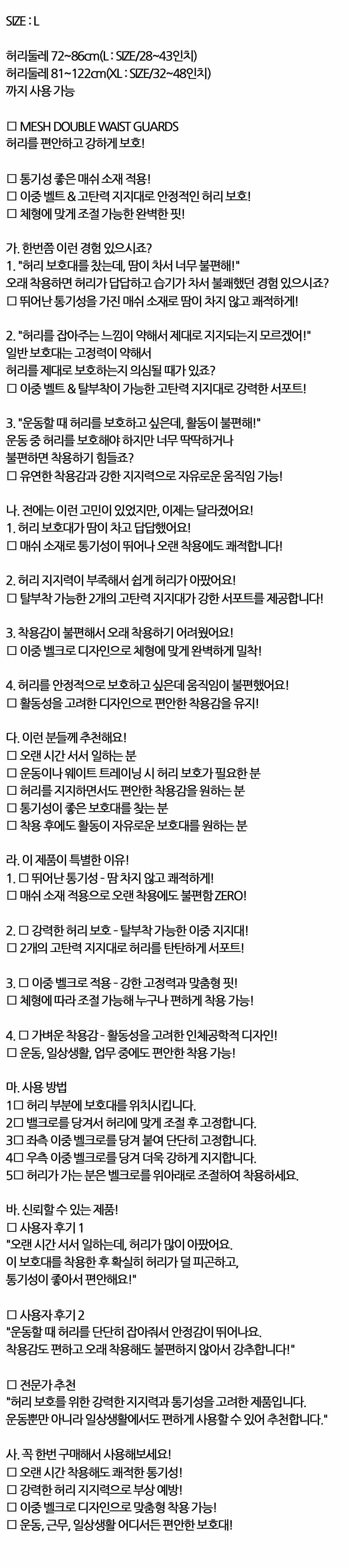 운동 근무 일상생활 어디서든 편안한 허리보호대 L