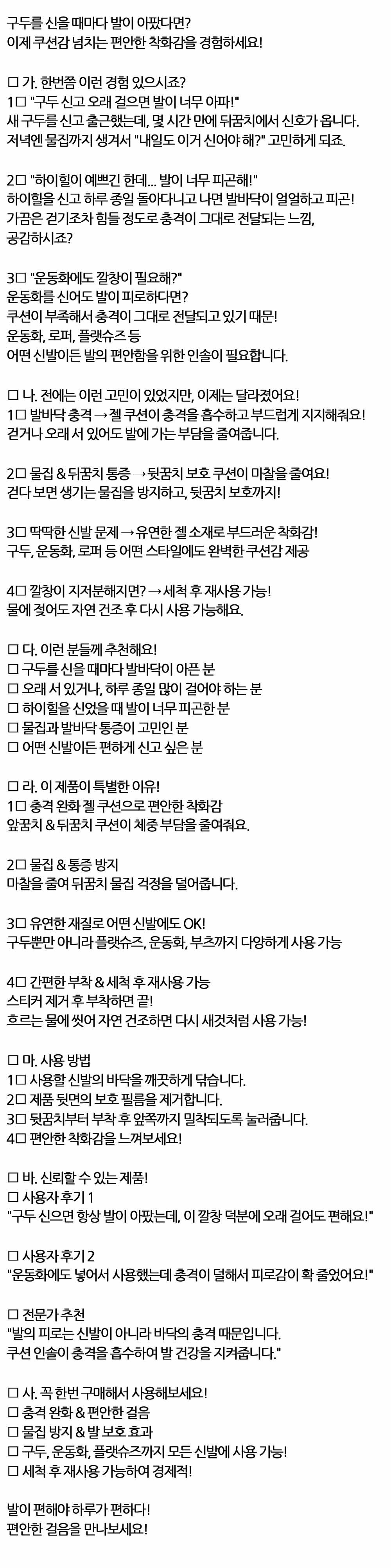 발이 편해야 하루가 편하다 편안한걸음 여성용 젤쿠션