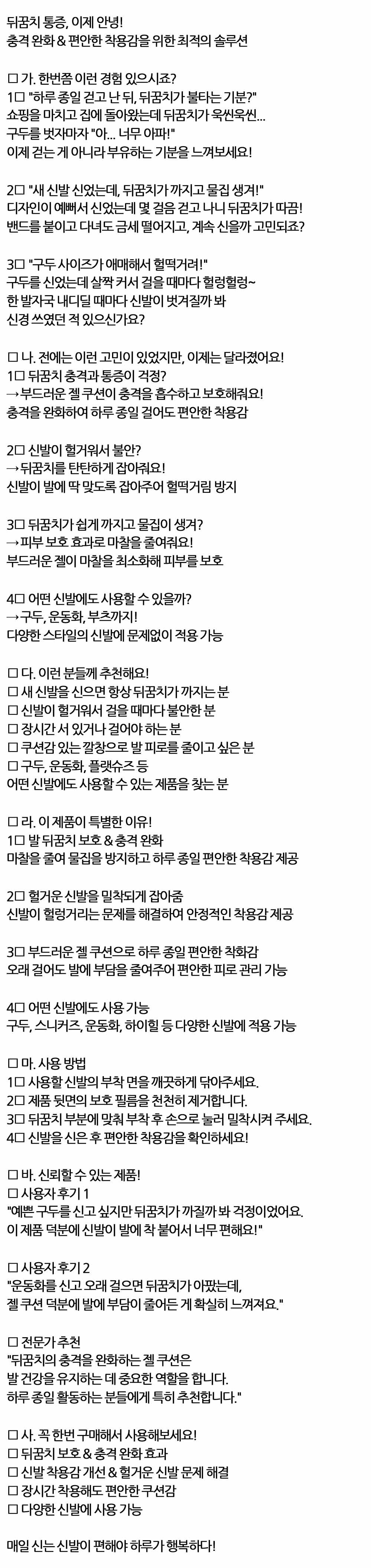 뒤꿈치통증 이제 안녕 편안한 착용감 여성용 쿠션패드