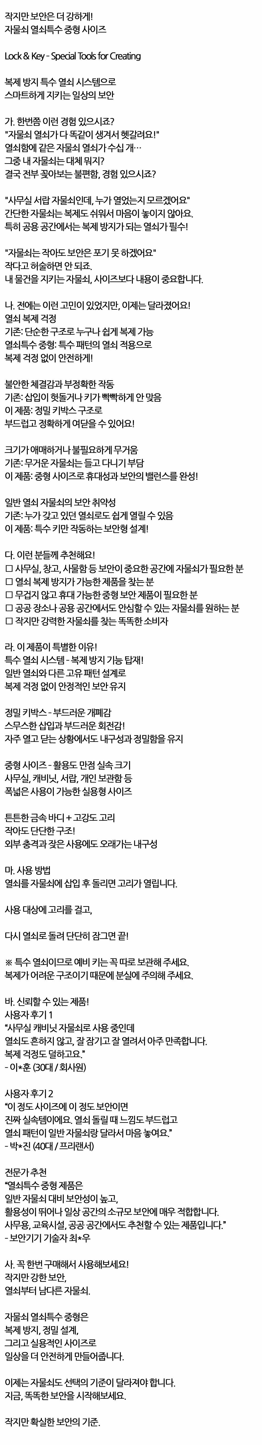 복제방지 시스템 정밀한 보안 자물쇠 특수열쇠 중형