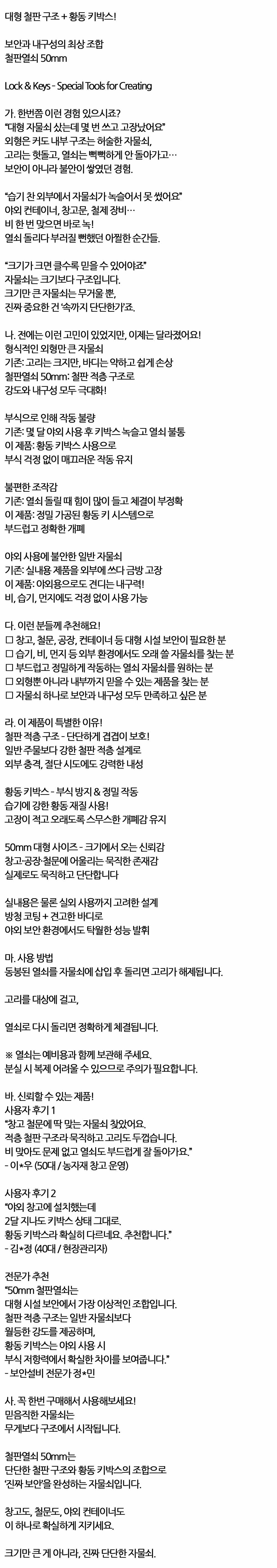 보안과 내구성의 조합 믿음직한 자물쇠 철판열쇠 50mm