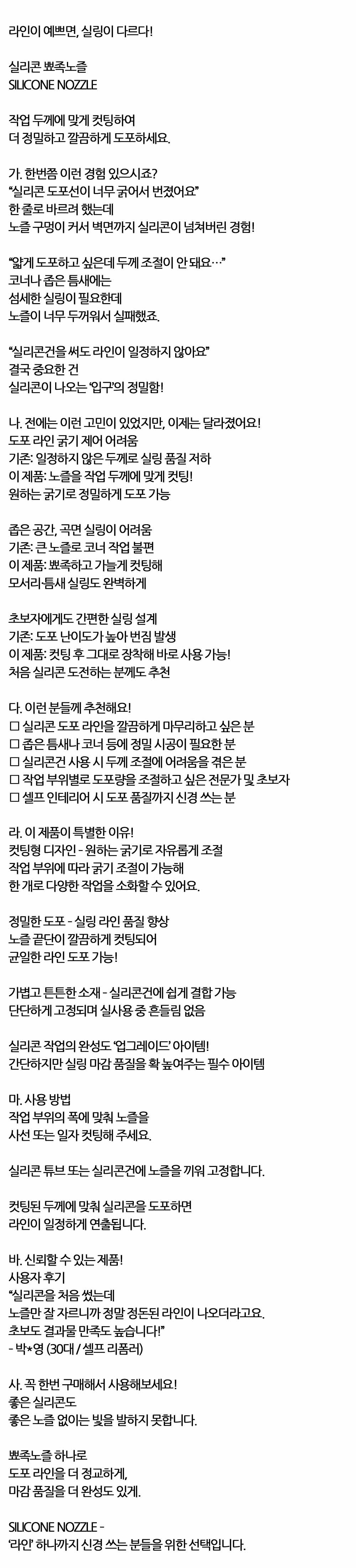 작업 두께와 용도에 맞춰 컷팅 실리콘 뾰족노즐 5입