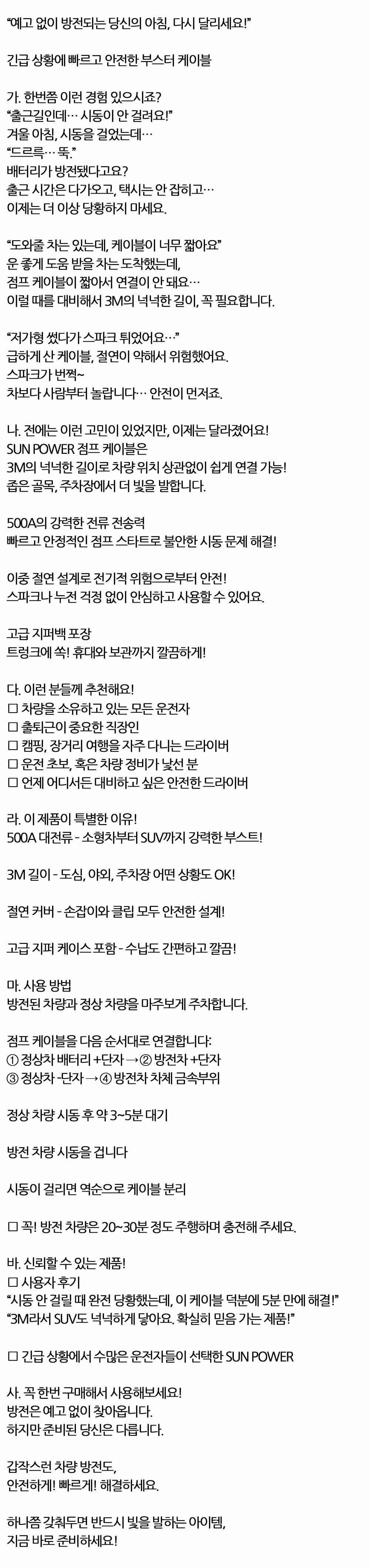 갑작스런 차량 방전 안전하게 빠르게 점프 케이블 3M