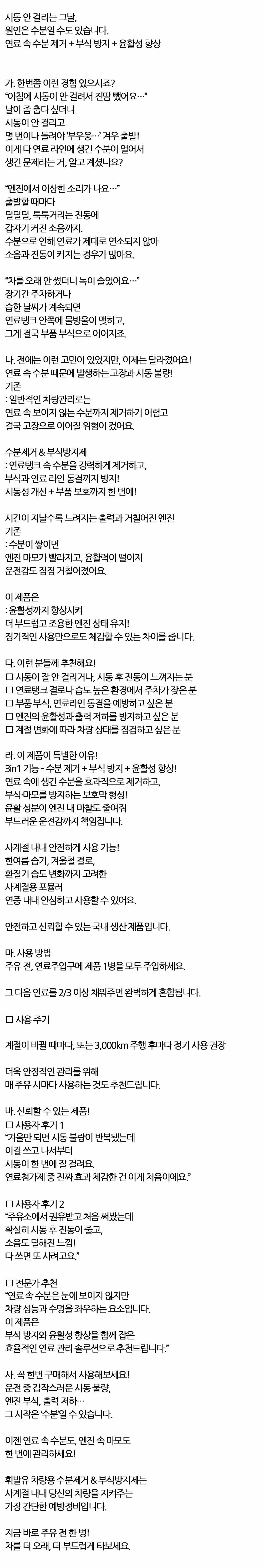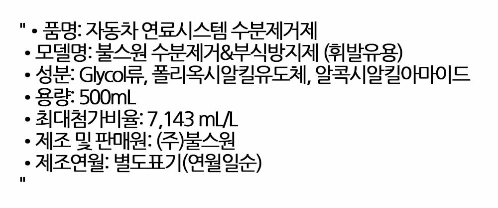 연료 속 수분제거 부식 방지제 휘발유 차량전용 500ml