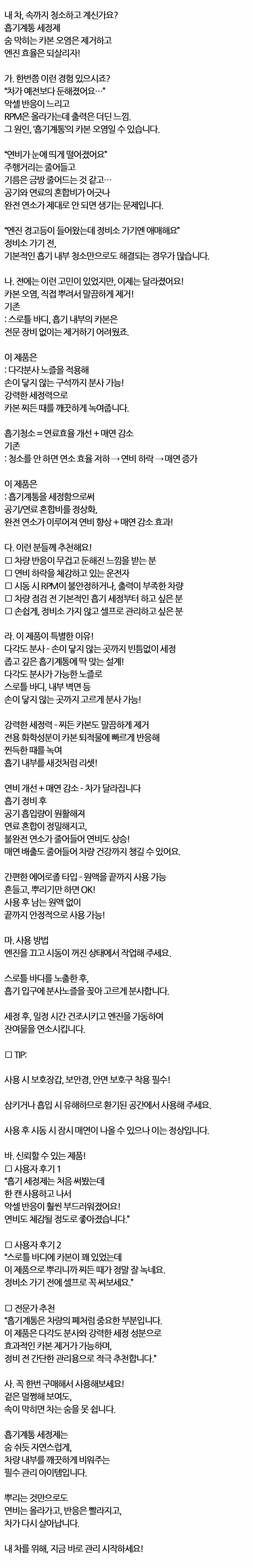 흡기속까지 깨끗하게 비워주는 다각분사 세정제 550ml