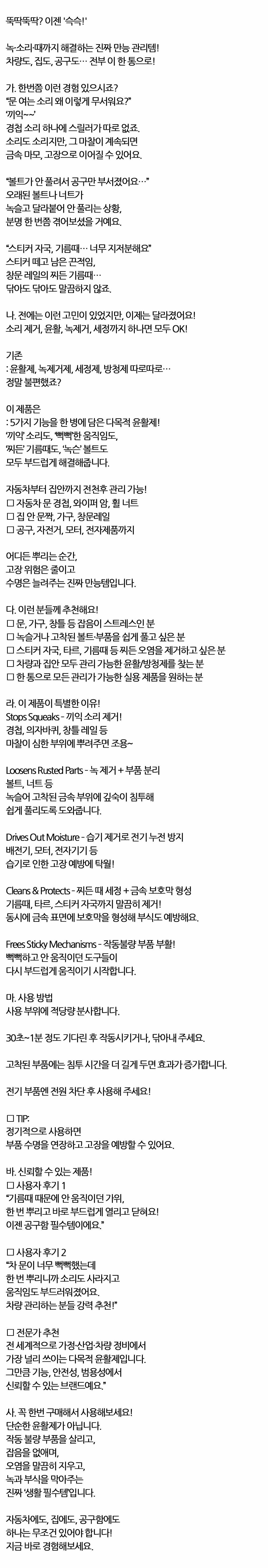 잡음제거 녹제거 습기방지 녹방지 방청윤활제 360ml