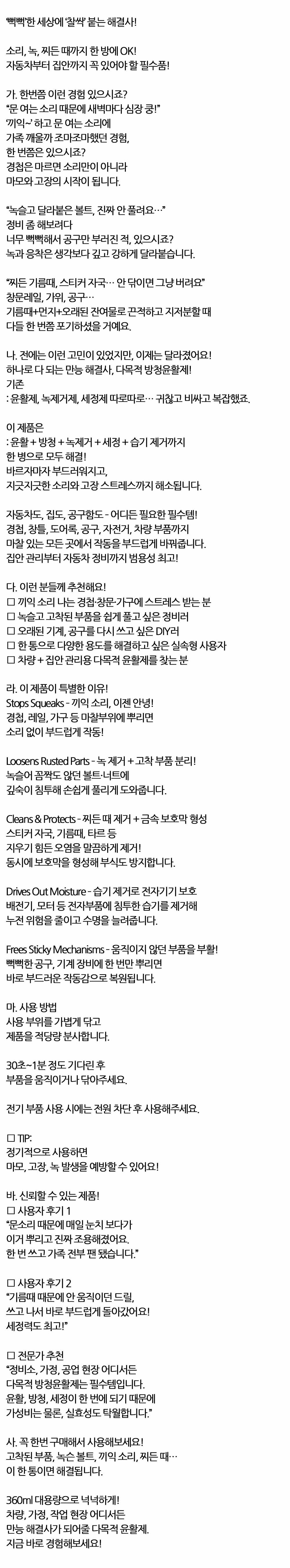 고착부품 녹슨볼트 끼익소리 다목적 방청윤활제 360ml