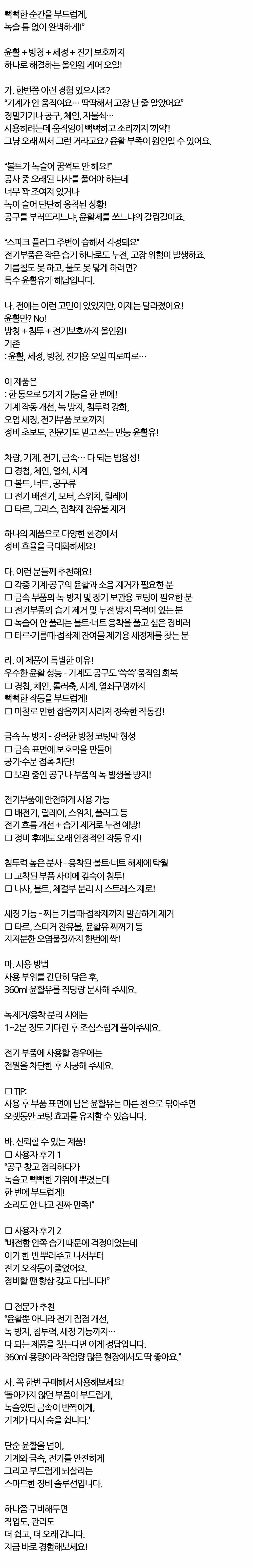 뻑뻑한 순간을 부드럽게 녹슬틈없이 방청윤활유 360ml