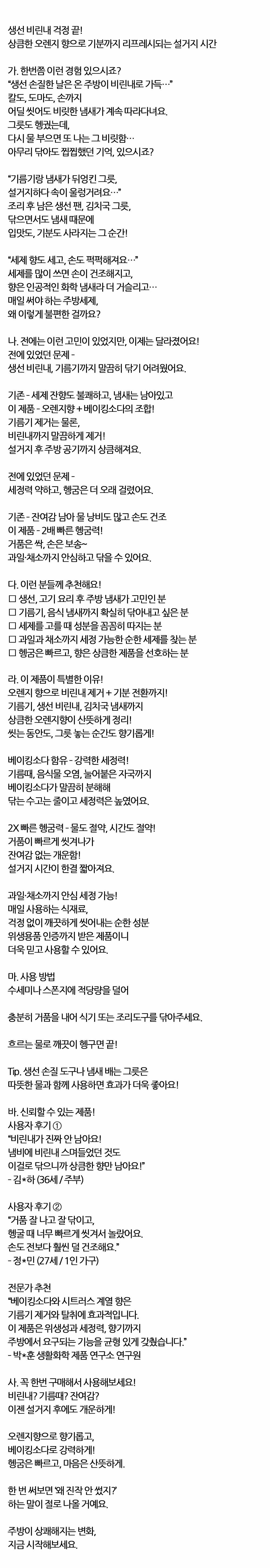 생선 비린내 걱정 끝 상큼한 오렌지향 주방세제 500ml
