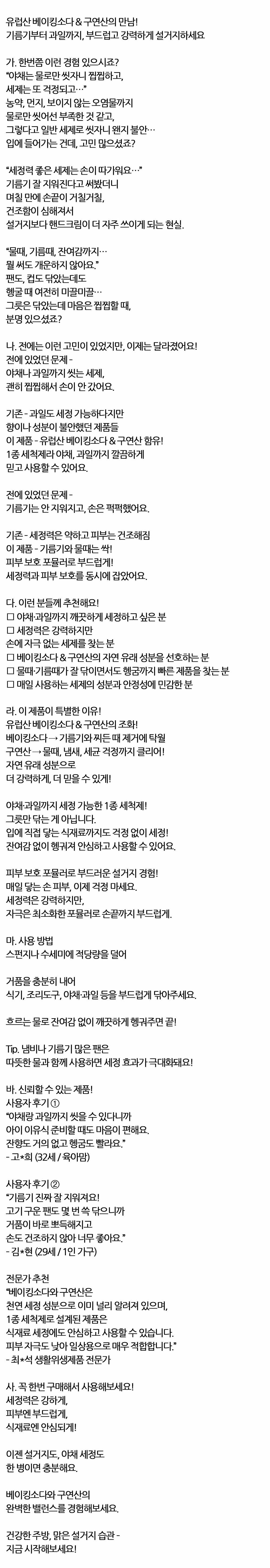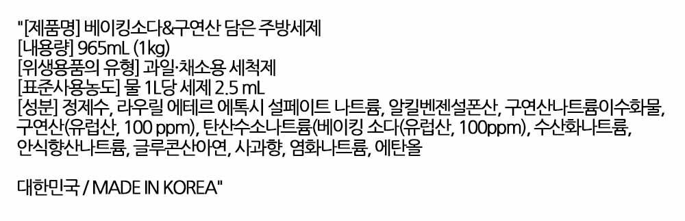 유럽산 베이킹소다와 구연산의 만남 주방세제 965ml