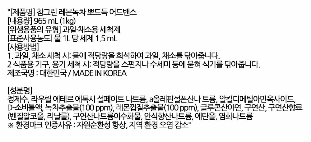 숲과 과일이 섞인 듯한 기분 좋은 향 주방세제 965ml